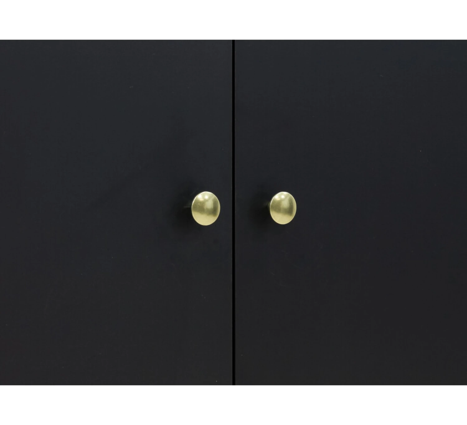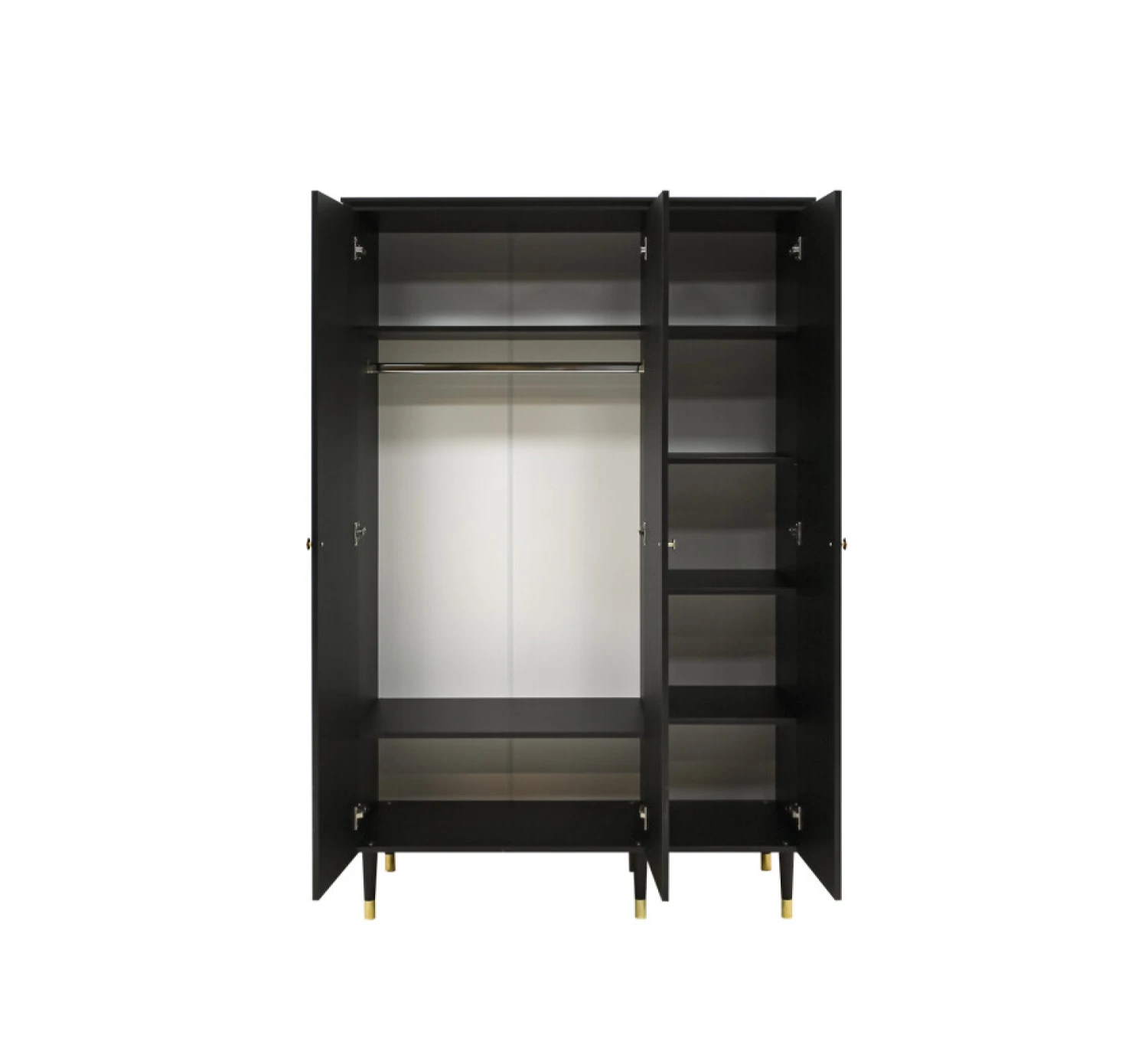 Deze mooie 3-deurskast Cloë van Bopita is een echte eyecatcher in de babykamer. De kast is uitgevoerd in een combinatie van mat zwart met gouden accenten. Hierdoor krijgt de kast een warme luxe uitstraling. Het interieur bestaat uit een brede hangroede en verschillende legplanken, waarvan de meeste in hoogte verstelbaar zijn. Zo kun je de kast dus helemaal naar je eigen wens en smaak inrichten. Combineer de 3-deurskast met de andere meubelen uit de serie Cloë.