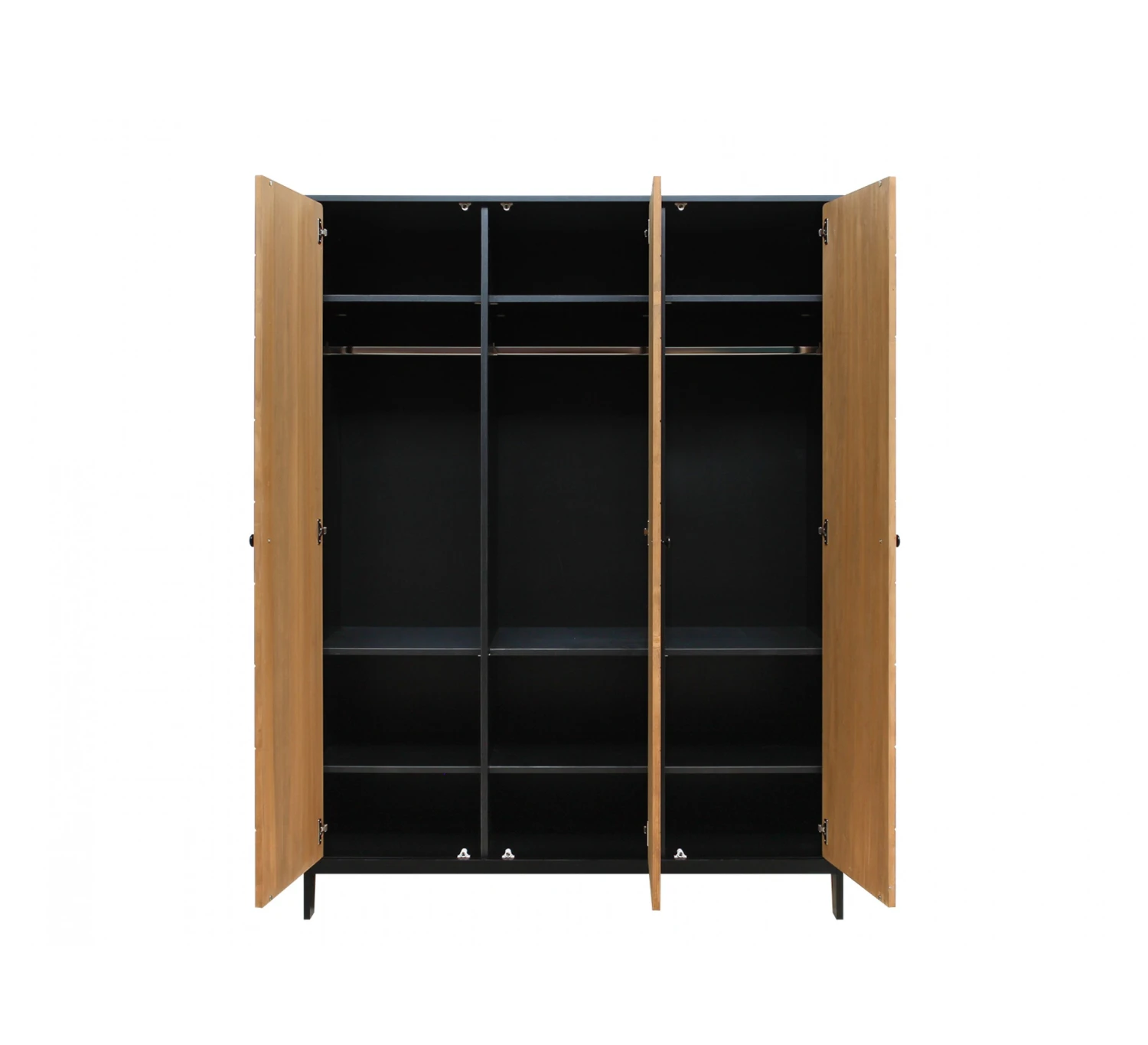 Kom je opbergruimte tekort? Kies dan voor deze ruime 3-deurskast Job van Bopita. De kast is uitgevoerd in een stoere combinatie van mat zwart met gefineerd hout en heeft daardoor een rustieke en stijlvolle uitstraling. Achter iedere deur bevinden zich drie legplanken en een hangroede.