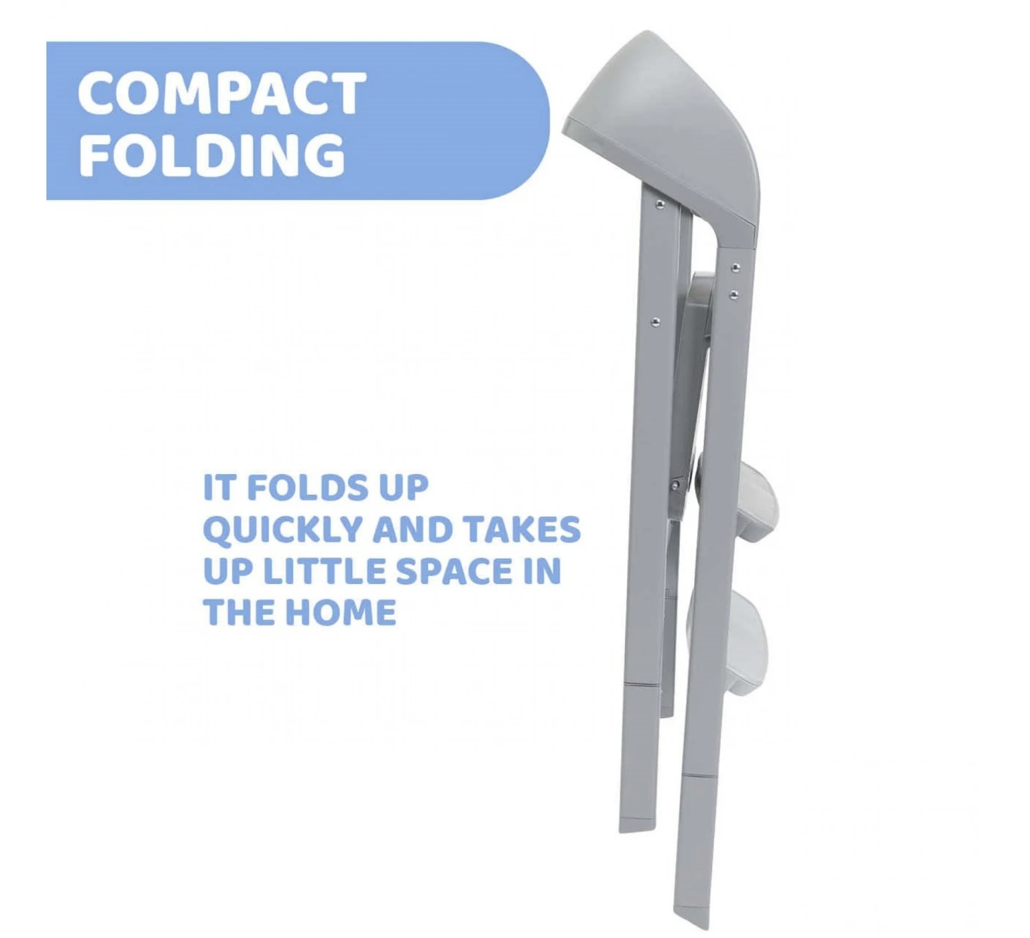 De bovenste voetsteun kan op 2 verschillende hoogtes worden versteld om aan de groei tegemoet te komen. De stoel is ruimtebesparend en compact opvouwbaar voor gemakkelijk opbergen.