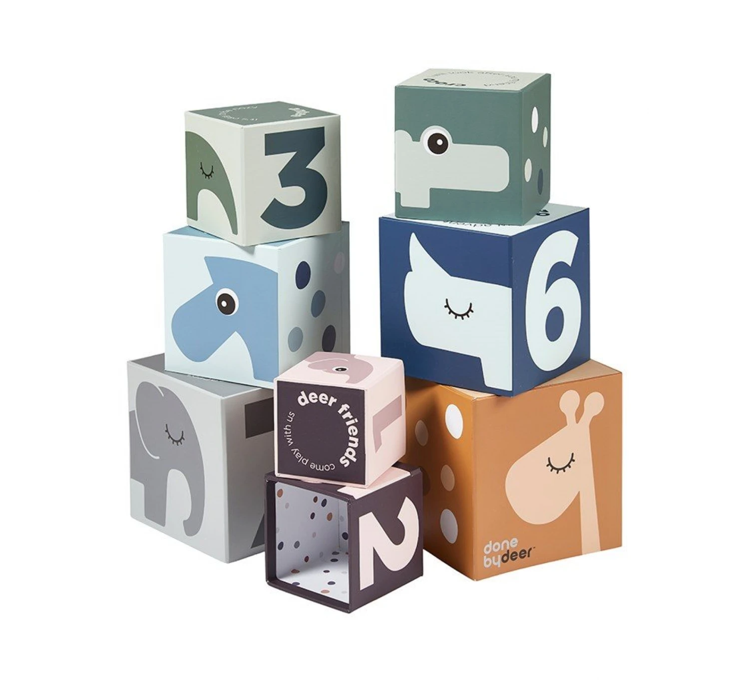 Speel met de Deer Friends van Done by Deer. Deze mooie blokkentoren helpt bij het ontwikkelen van de motoriek en hand-oog coördinatie van je kindje. De blokken zijn voorzien van de leuke figuurtjes van Done by Deer. De binnenkant van de blokken is hol, zodat je er ook nog iets in kunt verstoppen.