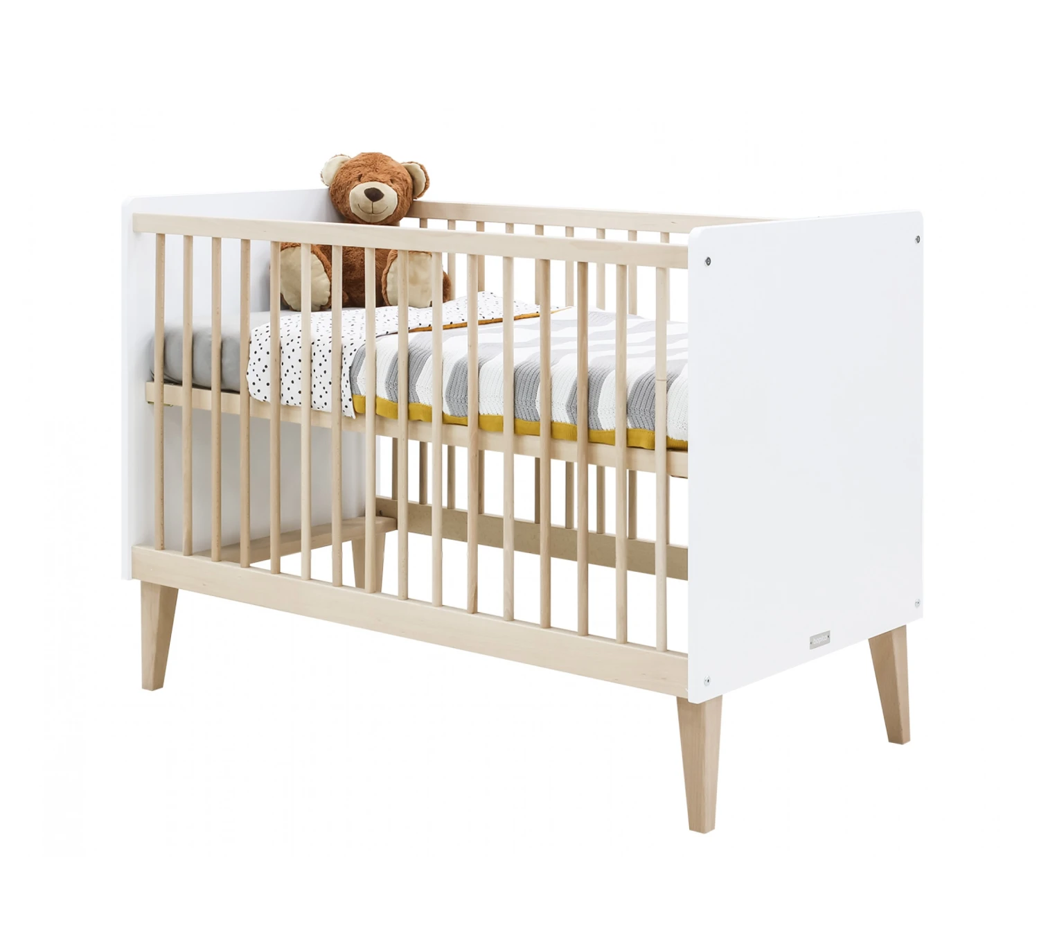 Het ledikant Indy van Bopita staat op ranke beukenhouten pootjes en is voorzien van ronde spijlen. De bedbodem is verstelbaar in hoogte. Zodra je baby zichzelf kan optrekken kun je de bodem verlagen voor extra veiligheid. Combineer dit ledikant met de andere meubels van de serie Indy!