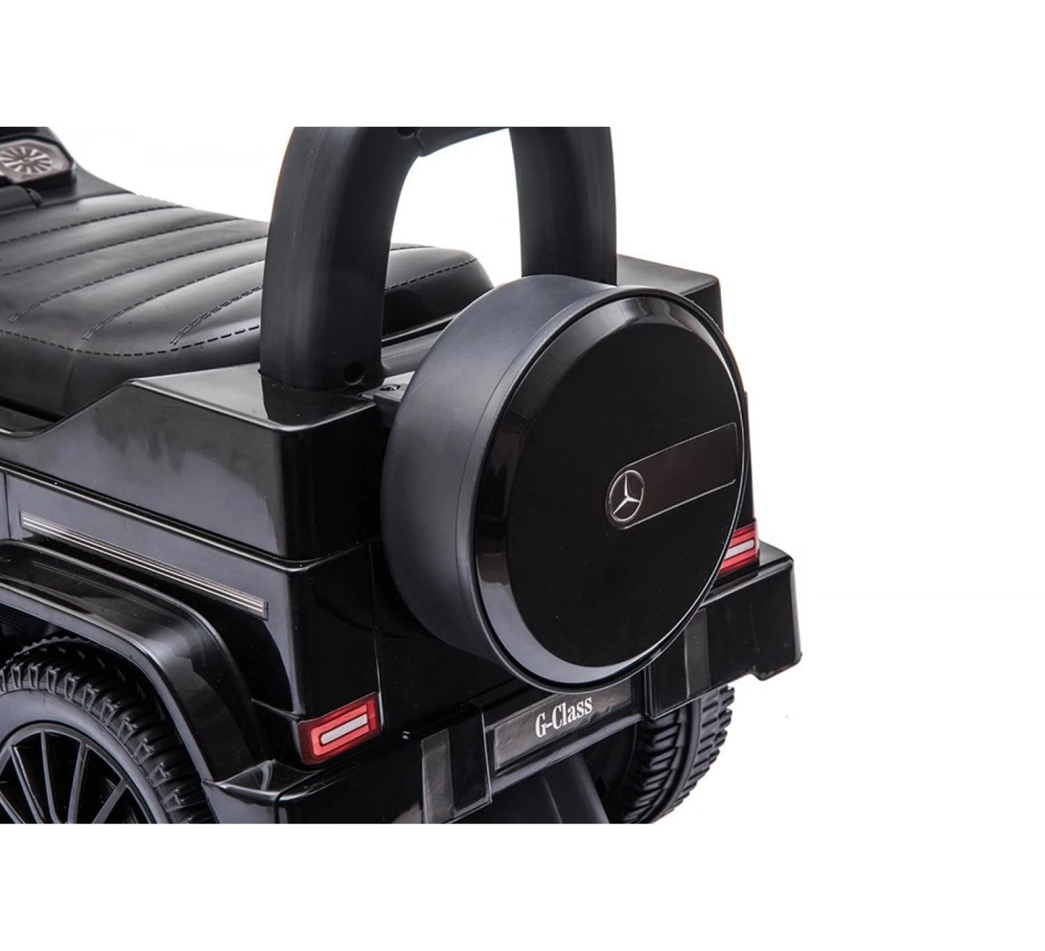 De loopauto Mercedes Benz G-Klasse is een echte musthave voor het wagenpark van je kleintje! Door de unieke uitstraling met de extra grote stoere velgen en het stuur, welke voorzien is van een claxon met diverse melodieen, komt je kleintje wel heel stoer voor de dag. Door het grote opbergvak in de zitting kan je kindje zijn belangrijke spulletjes altijd meenemen onderweg.