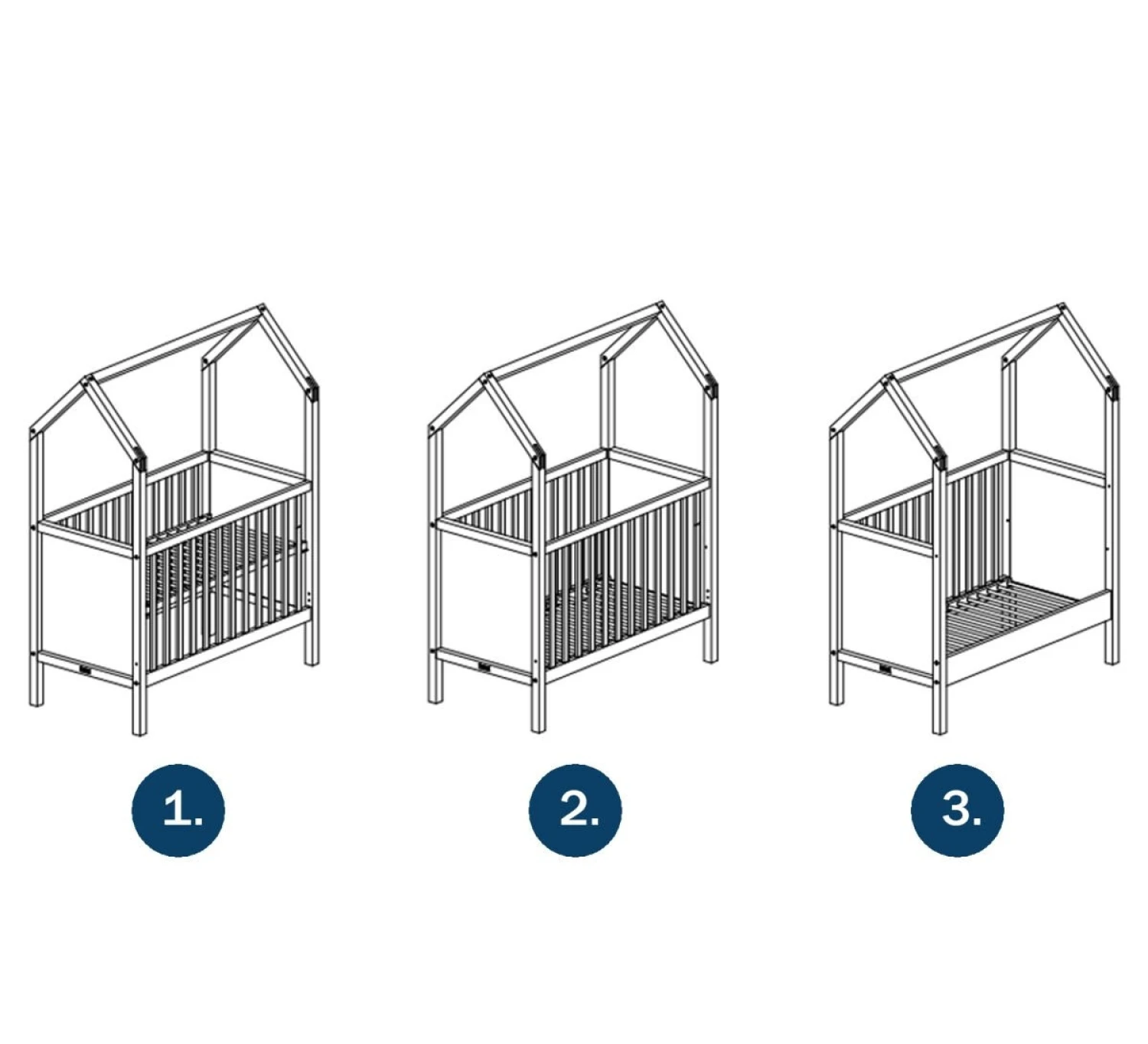 My First House Bedbank 60×120 is een ombouwbaar bed met een dakframe. De bedbodem is in hoogte verstelbaar. Van een spijlenbed naar een bedbank ombouwbaar. Zo heb je extra lang plezier van dit bed! De matrasmaat blijft na ombouwen hetzelfde.