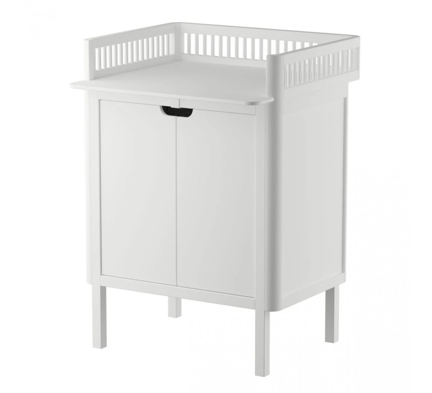 Deze kenmerkende commode van het merk Sebra is voorzien van twee deuren waarin je heel veel spulletjes kunt opbergen. Het blad is voorzien van een opstaande rand, zodat je baby niet zomaar van de commode af kan rollen. De commode is gemaakt in de stijl van het Sebra bedje en is dus ideaal te combineren met de andere Sebra meubelen. De commode is verkrijgbaar in twee verschillende kleuren, maar ook met twee lades in plaats van twee deuren. Doordat het blad bovenop aan de achterkant iets uitsteekt, komt de commode een klein stukje van de muur te staan.
